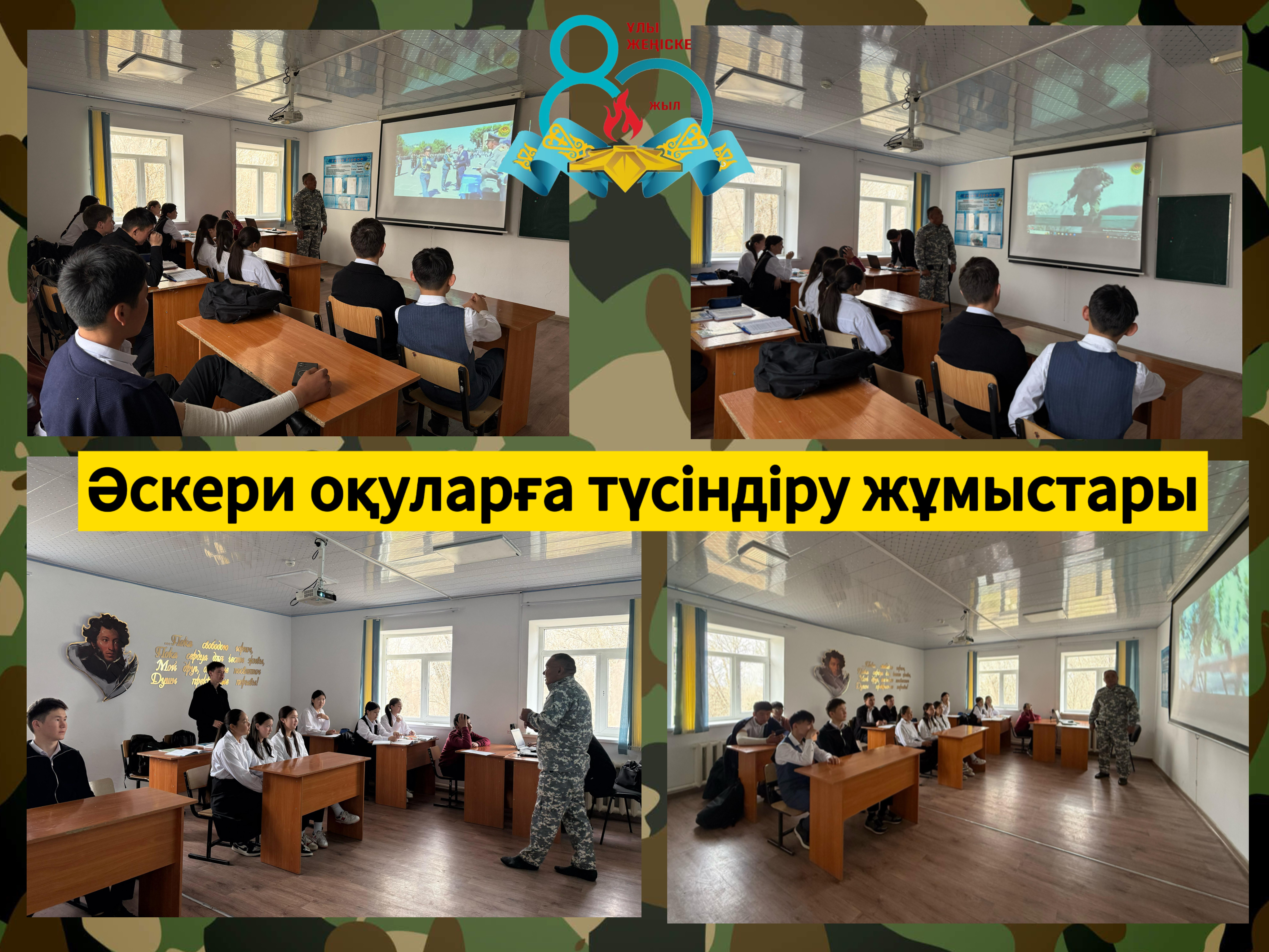 беретін мектебі” КММ-де 9-11 сынып оқушылары арасында әскери оқуларға түсіндіру жұмыстары жүргізілді.
