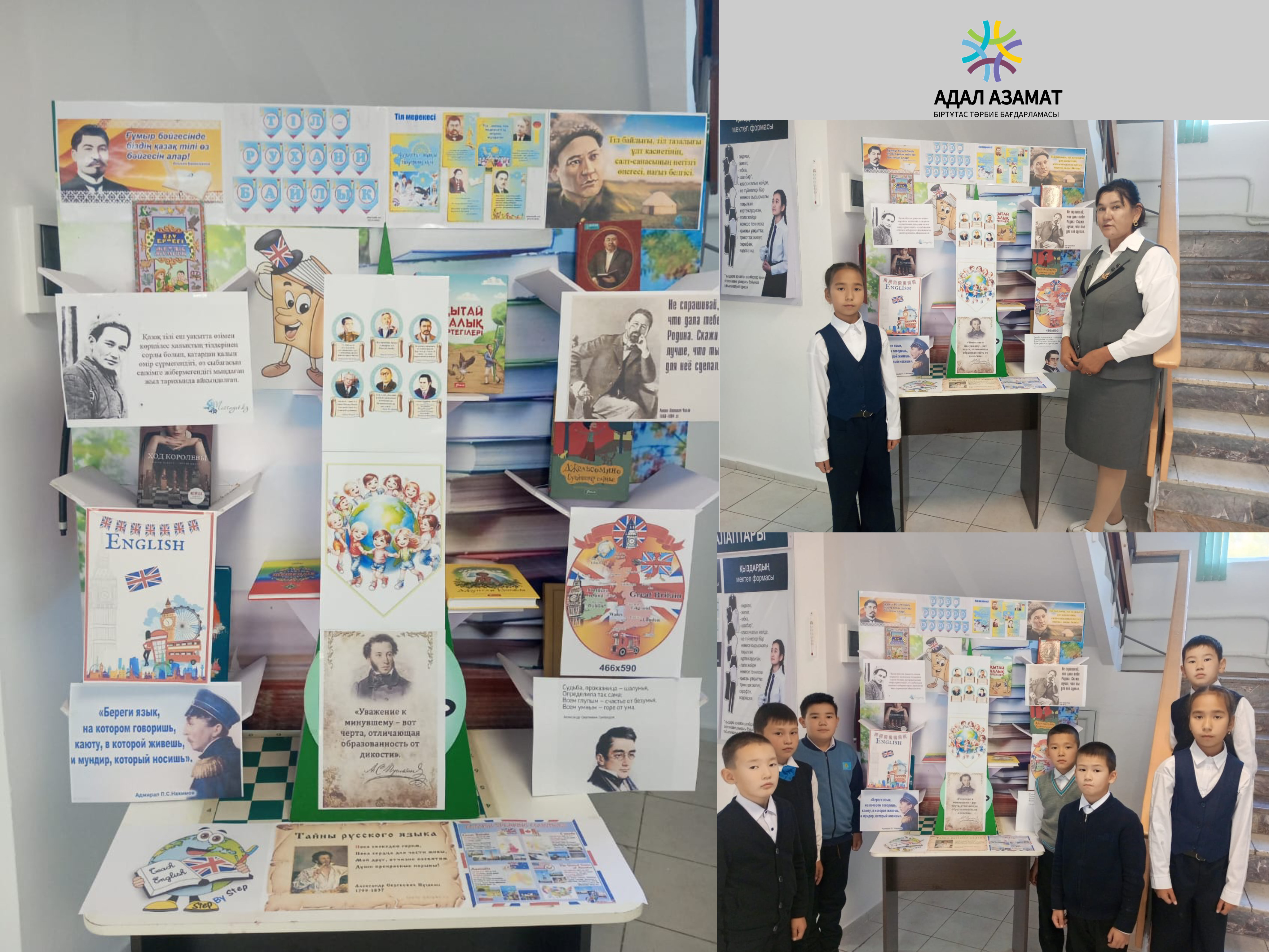 Абай облысы білім басқармасының Аягөз ауданы білім бөлімінің «№ 1 Ақшәулі жалпы орта білім беретін мектебі» КММ-де “Адал азамат” біртұтас тәрбие бағдарламасы аясында еңбекқорлық және кәсіби біліктілік құндылығына негізделген қыркүйек айының 25-күні “Қазақстан халқының тілдері күні” мерекесіне орай мектеп кітапханашысы Айганым Скакова «Тілдер шеруі» айлығы барысында «Тіл-рухани байлық» деген тақырыпта Қазақстан халықтарының тілдері туралы танымдық көрме (қазақ тілі, орыс тілі, ағылшын тілі) ұйымдастырды.