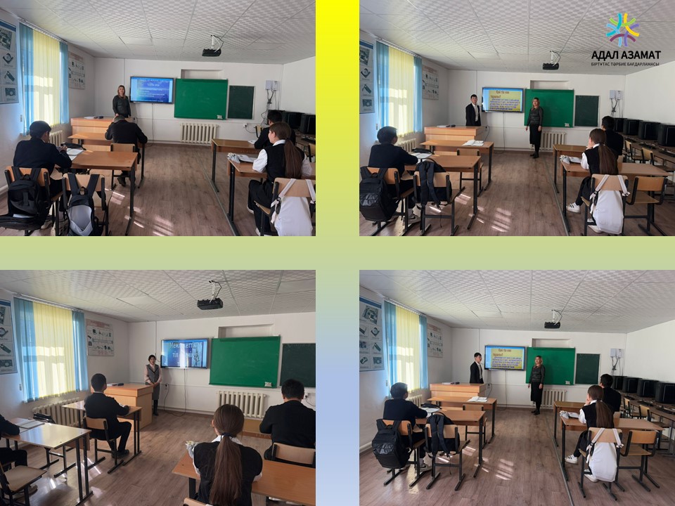 Абай облысы білім басқармасының Аягөз ауданы білім бөлімінің “№1 Ақшәулі жалпы орта білім беретін мектебі” КММ-де “Адал азамат” біртұтас тәрбие бағдарламасы аясында еңбекқорлық және кәсіби біліктілік құндылығына негізделген қыркүйек айының 26-күні 9 сыныпта “Тіл-халықтың мұраты” тақырыбында танымдық сабақ өткізілді.