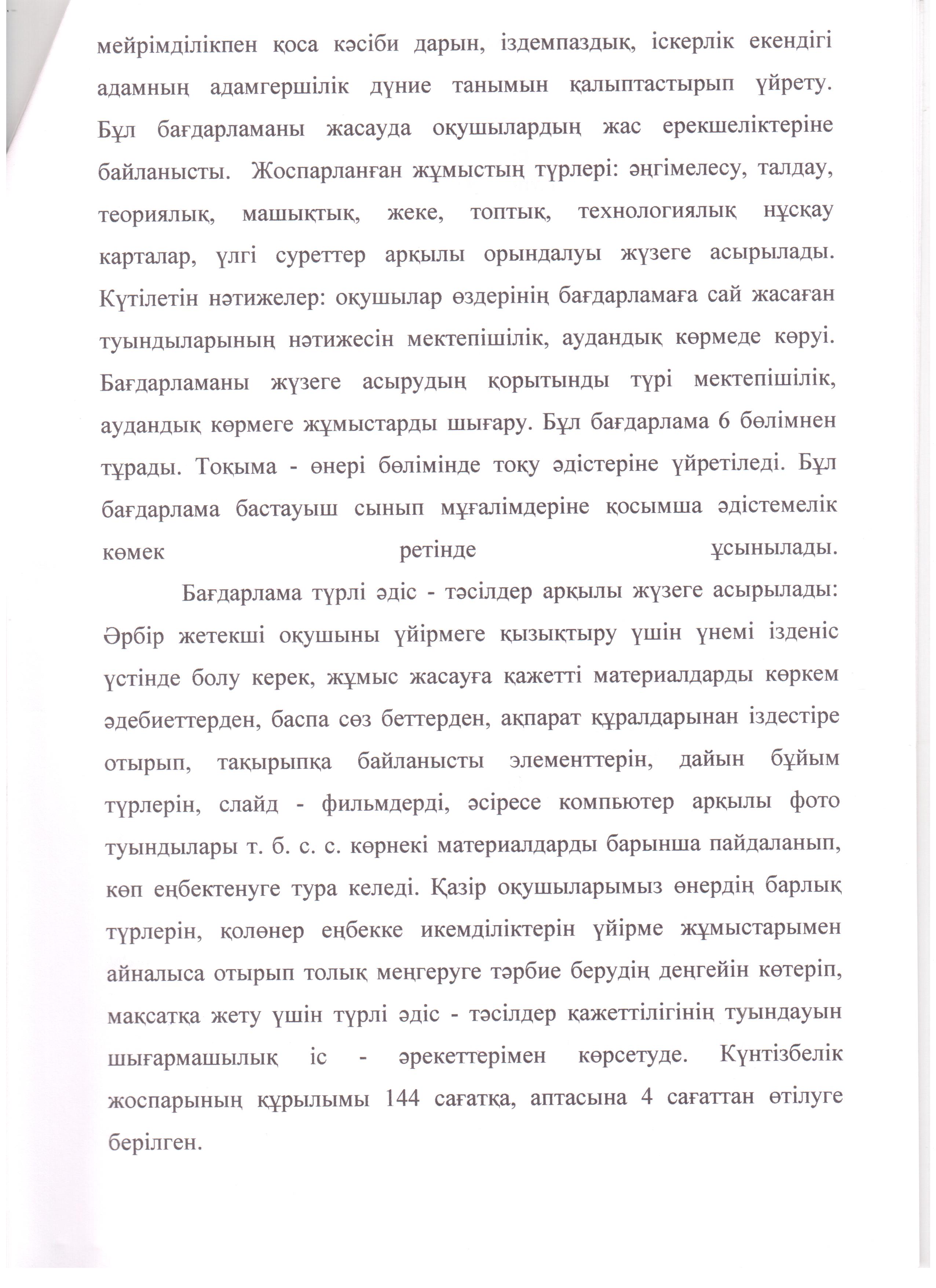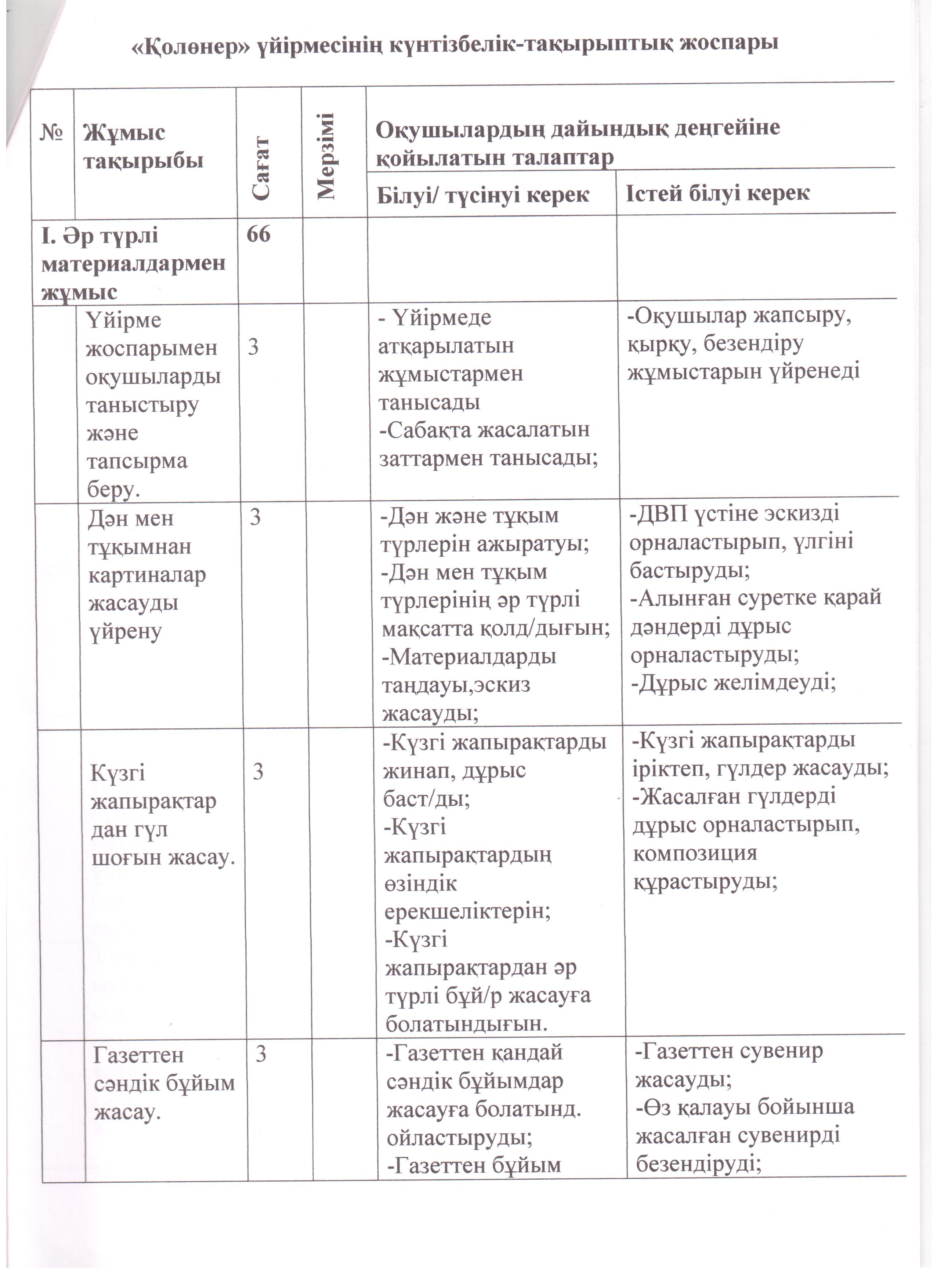 "Қолөнер" үйірмесінің 2022-2023 оқу жылына арналған жоспары
