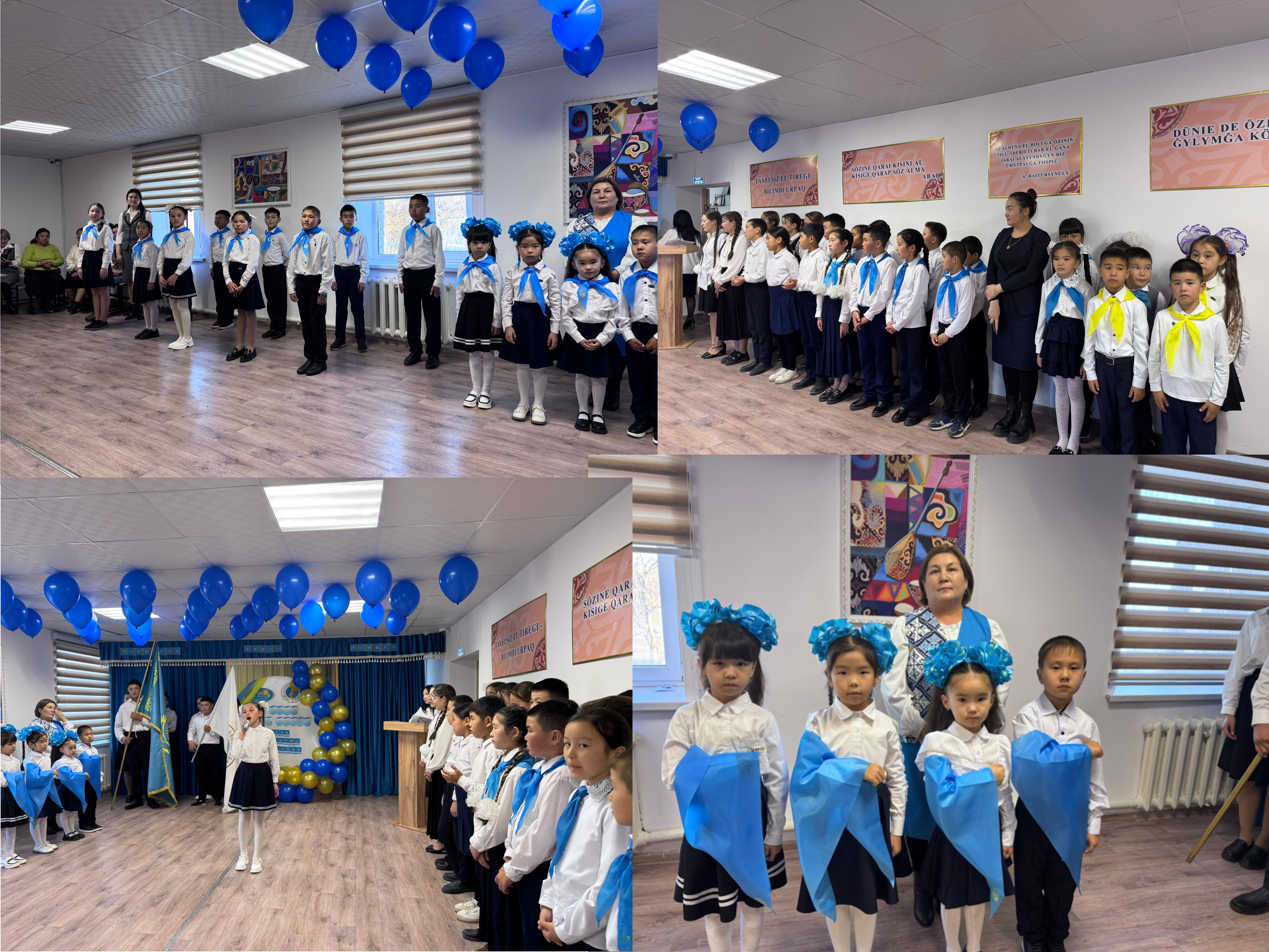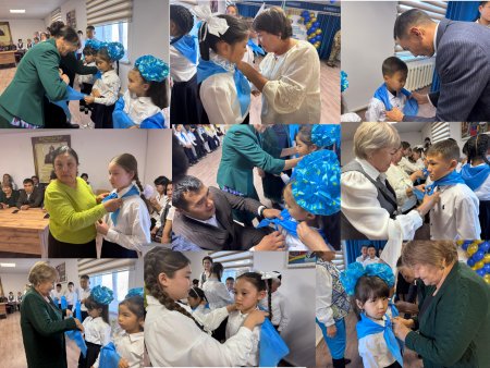 Жасөспірімдерге ұйымның көгілдір галстугі мен төсбелгісі табысталып, ұстаздар мен қонақтар ізгі тілектерін білдірді. Іс-шара патриоттық әндермен, өлеңдермен және оқушылардың шығармашылық қойылымдарымен өрнектелді.