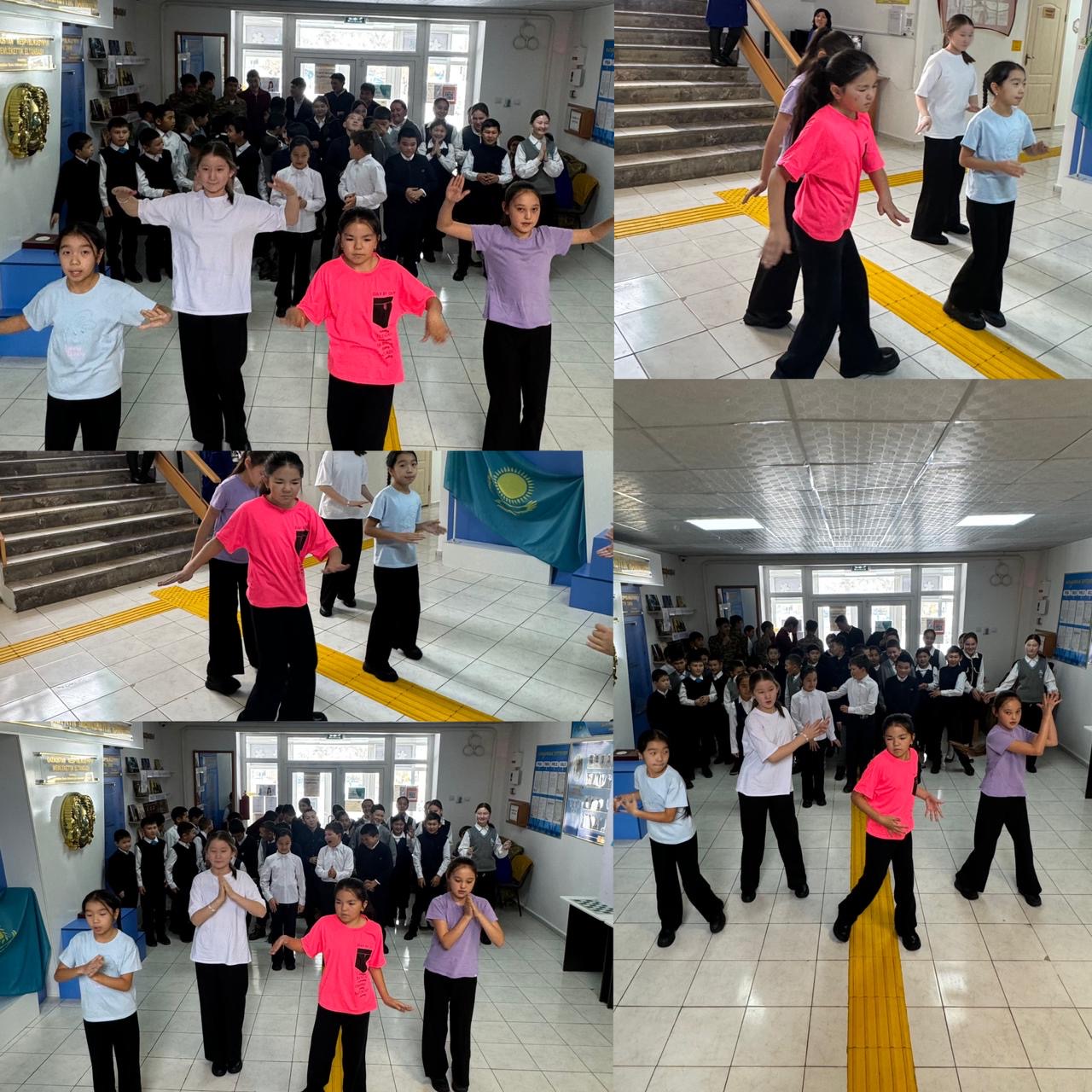 Әр сынып өзіне берілген түске сай киім киіп, түрлі-түсті шарлар мен плакаттар дайындады. Флешмоб барысында оқушылар ән айтып, би билеп, белсенділік танытты. Шара көңілді әрі әсерлі өтті.