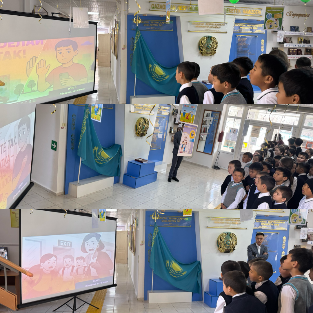 Абай облысы білім басқармасының Аягөз ауданы білім бөлімінің “№1 Ақшәулі жалпы орта білім беретін мектебі” КММ-де “Адал Азамат” Біртұтас тәрбие бағдарламасы аясында “Әділдік және жауапкершілік” құндылығына негізделген 2025 жылдың 05-14 қараша аралығында “Лжетерроризм” атты Қазақстан Республикасы заңнамасына сәйкес жауапкершілікті жеткізу мақсатында мектебімізде (ақпараттық-түсіндіру жұмыстары 1 қабатта көрсетілді) бейнематериал жарияланды.