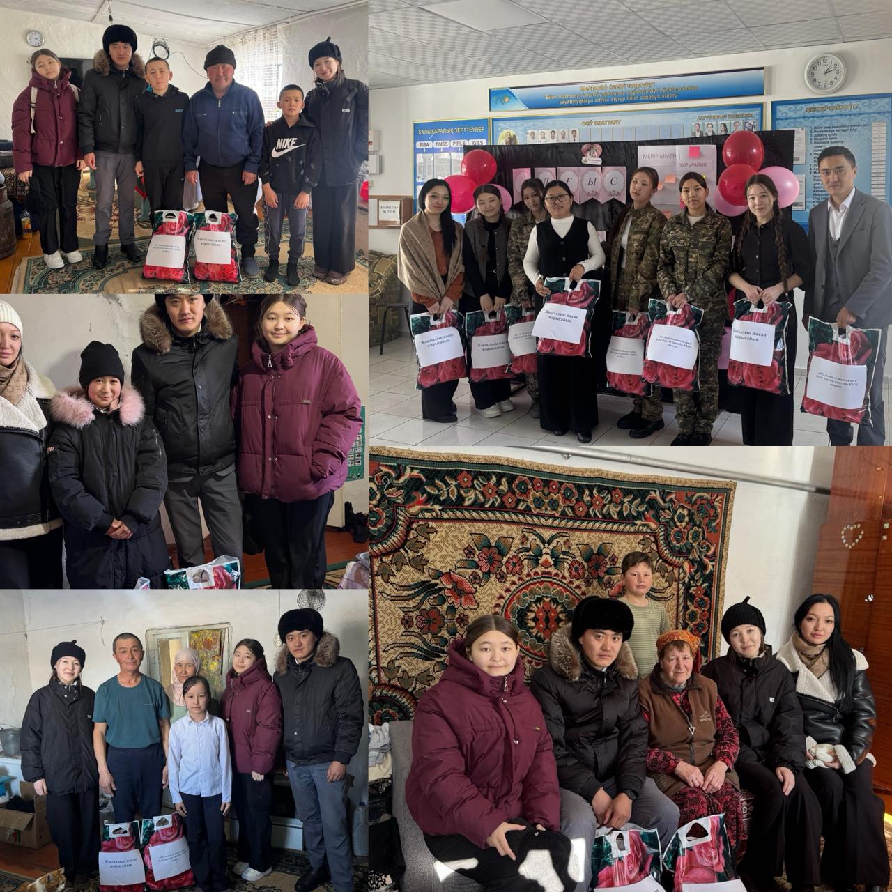 Адамгершілік пен қайырымдылық құндылықтарын дәріптеу мақсатында мектеп ұжымы мен оқушыларының ұйымдастыруымен 4 отбасыға арнайы барып, сыйлықтар жеткізілді.