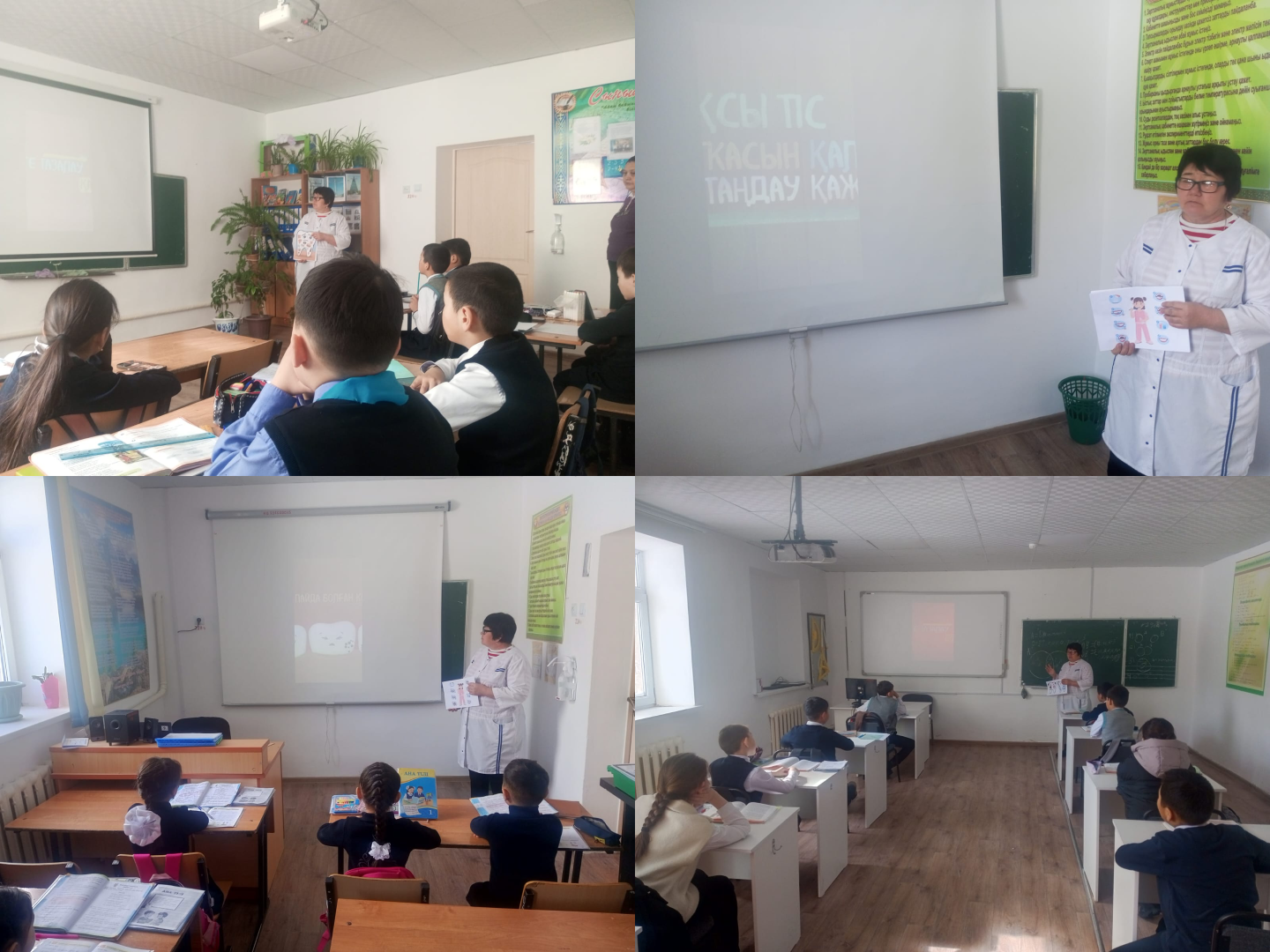 Абай облысы білім басқармасының Аягөз ауданы білім бөлімінің “№1 Ақшәулі жалпы орта білім беретін мектебі КММ-де “20 наурыз Дүниежүзілік ауыз қуысының денсаулығын сақтау күніне” арналған жұмыс жоспарына сәйкес, мектеп медбикесі Назира Омарова “Тәуелсіздік және Отаншылдық” құндылығына негізделген наурыз айының 12 күні мектеп оқушыларына “Тісті дұрыс тазалау ережелері” тақырыбында бейнеролик көрсетіп түсіндірме жұмыстарын жүргізді.