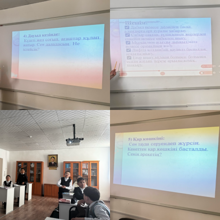 Табиғаттағы әртүрлі құбылыстар дауыл, өрт, қар көшкіні, су тасқыны, жер сілкіну т.б. кезіндегі қауіпсіздік ережелерін білді.