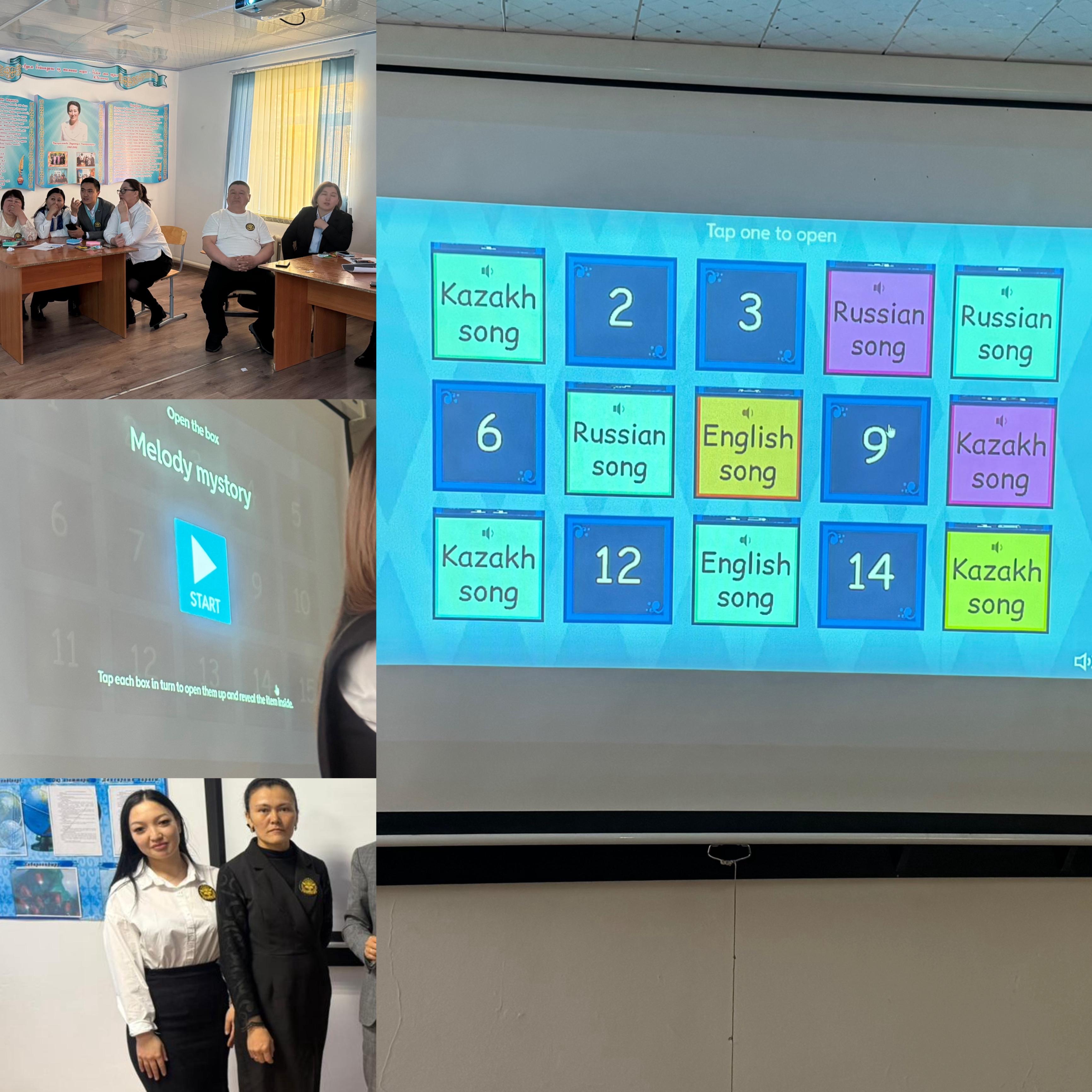 Жарыс барысында қатысушы мұғалімдерге арнайы дайындалған ұяшықтар ұсынылды. Әр ұяшықта жасырылған әндердің әуені қойылып, қатысушылар сол әуенді тыңдап, әннің атауын табуы керек болды. Әндер қазақ, орыс және ағылшын тілдерінде беріліп, мұғалімдердің музыкалық есту қабілеті мен үш тілдегі білімдері сынға түсті.