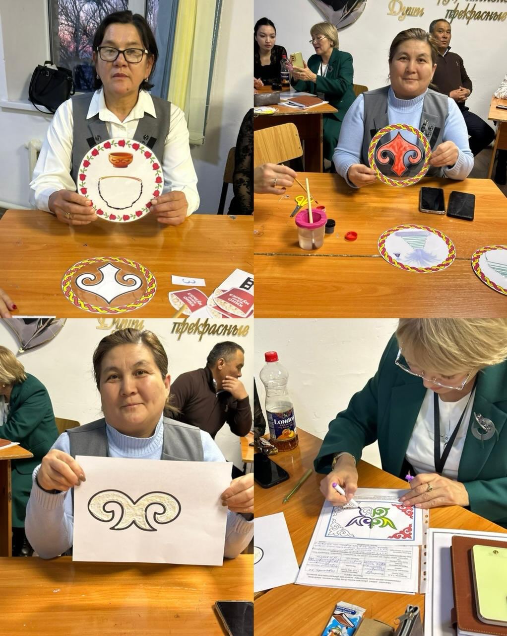 “Ізденіс” шығармашылық тобында "Ою-өрнекті қолдану арқылы шығармашылық қабілетті дамыту" тақырыбында шебер сынып
