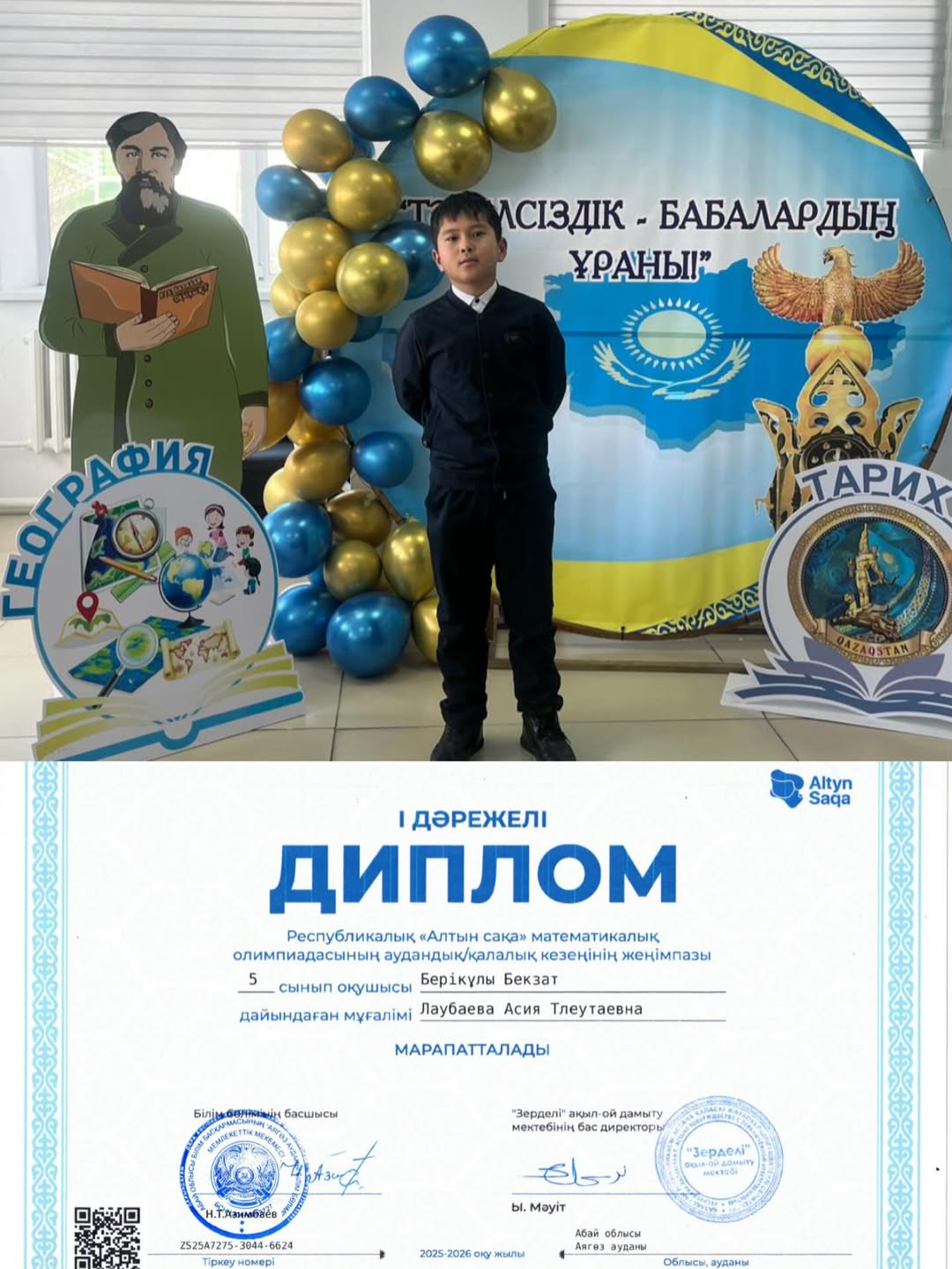 республикалық "Алтын сақа" олимпиадасының аудандық кезеңінен 5 сынып оқушысы Берікұлы Бекзат І орын иеленді