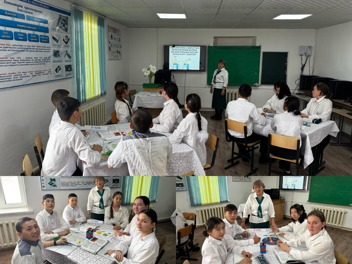 10 ақпан күні биология пәнінің мұғалімі, педагог-зерттеуші Садыкова Эльмира Аятовна 8 сыныпта “Гиподинамия. Сымбаттың бұзылуы және жалпақтабандылықтың пайда болу себептері” тақырыбында;
