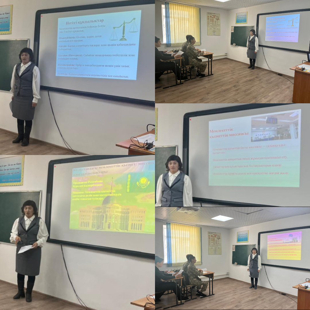 Мақсаты: оқушыларға мемлекеттік қызметтің мәнін, миссиясын және негізгі құндылықтарын түсіндіру, азаматтық жауапкершілікті қалыптастыру.