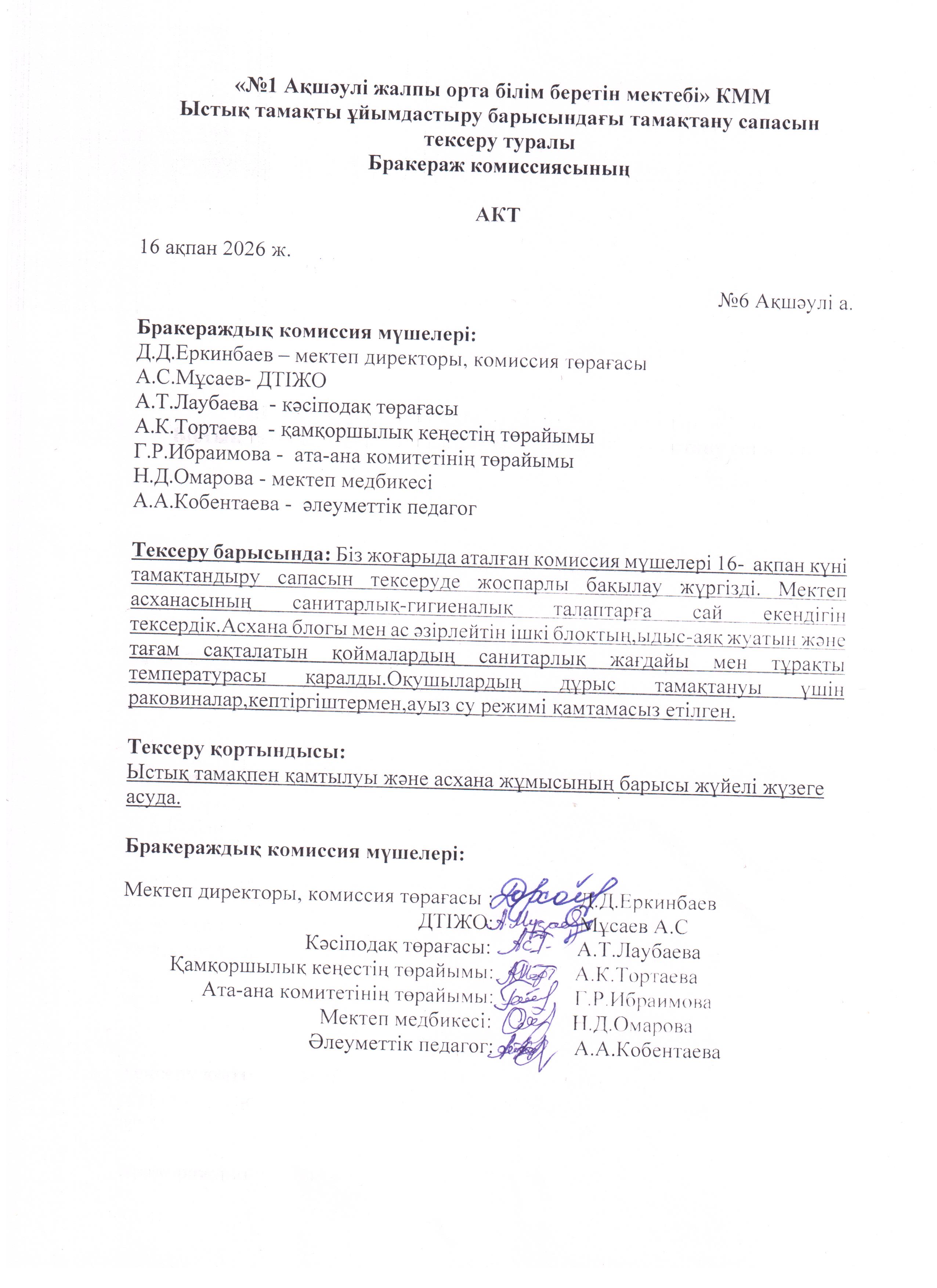 » Бракераж комиссиясының АКТ Ақпан 2026
